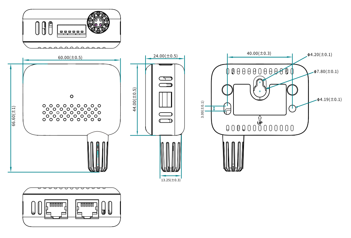 自帶1路高精度溫濕度采集,2路RJ45接口,支持Modbus RTU協議通訊。
