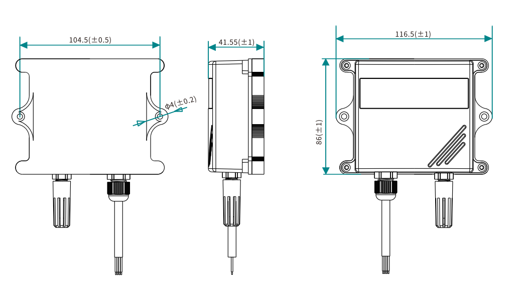 | 支持1路溫濕度測量,2路電流輸出,1路溫度輸出,1路濕度輸出 |